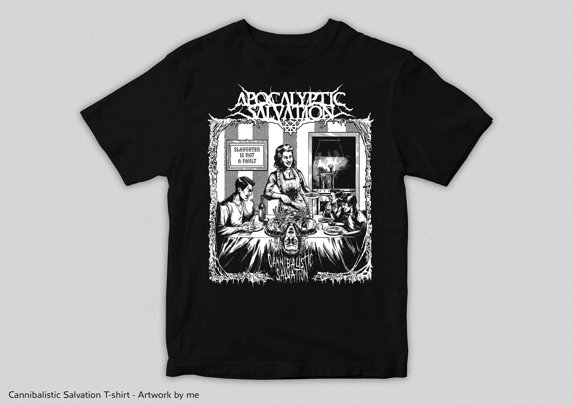 Case and Booklet design, L.O.V.E. T-shirt layout and painted frame, Cannibalistic Salvation T-shirt Design, Inked Ouroboros Design.