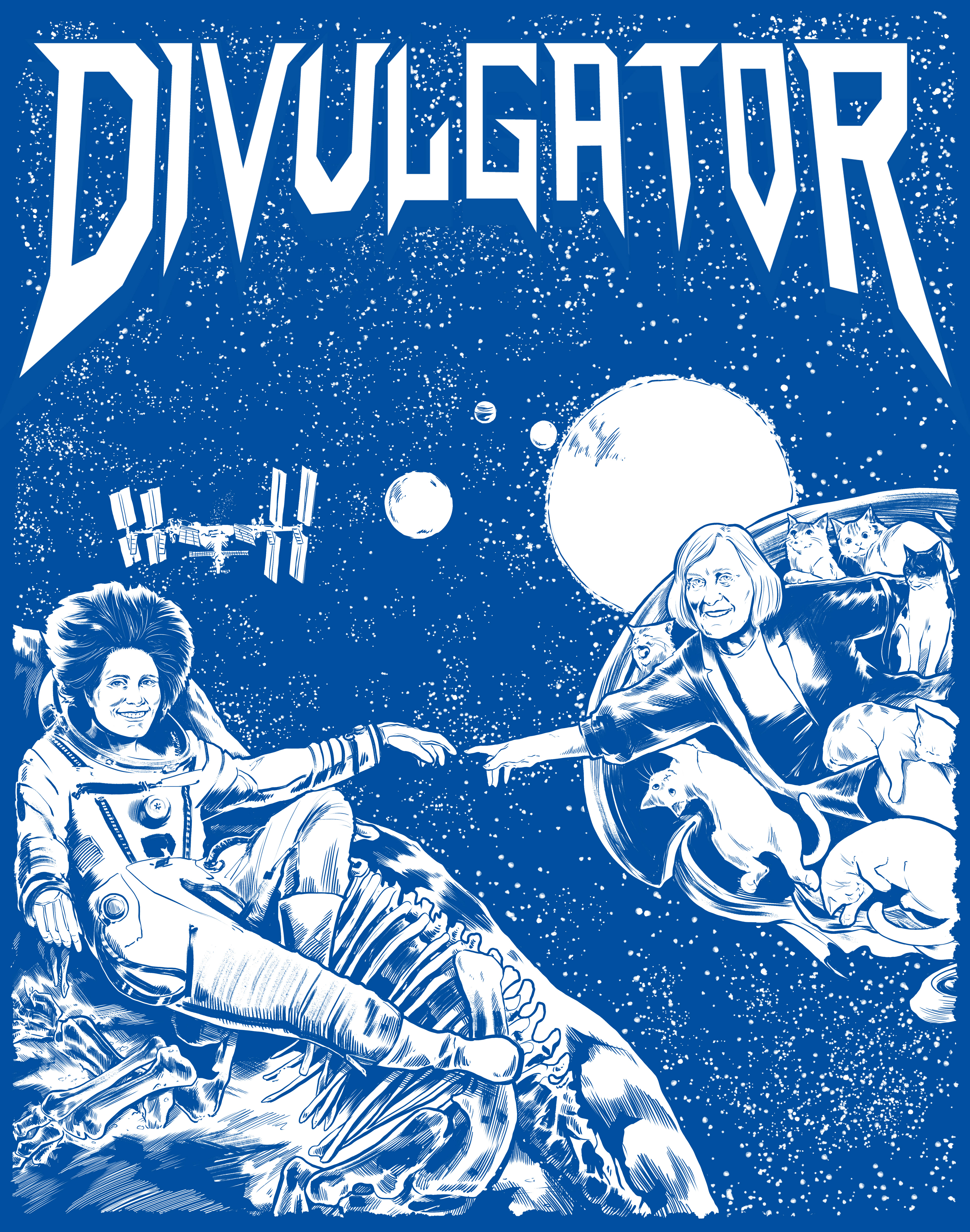 Inspired by "The Creation of Adam", Margherita Hack (God) gives life to Samantha Cristoforetti (Adam)